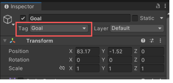 Goal タグを追加したらゴールオブジェクトに設定してください。